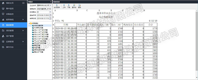 根據(jù)需要按不同的時(shí)間周期生成日、月、年報(bào)表,也可按參數(shù)名稱自動(dòng)生成報(bào)表。對(duì)污水廠的液位、流量、設(shè)備運(yùn)行狀態(tài)、電能、設(shè)備故障狀態(tài)、動(dòng)力設(shè)備等信息中心自動(dòng)匯總生成日?qǐng)?bào)表。