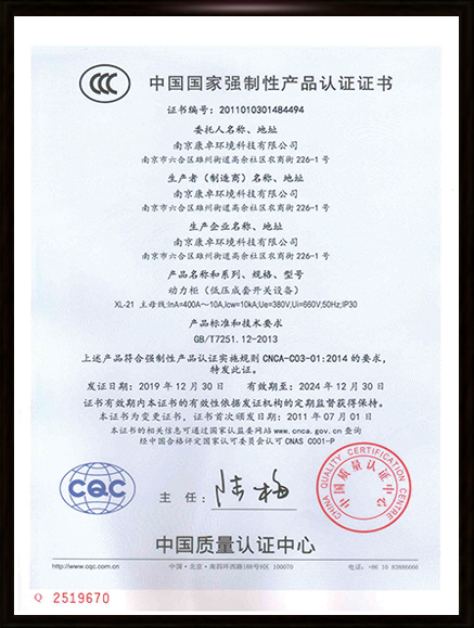 康卓生產(chǎn)的XL-21動(dòng)力柜獲得國(guó)家強(qiáng)制性產(chǎn)品CCC認(rèn)證