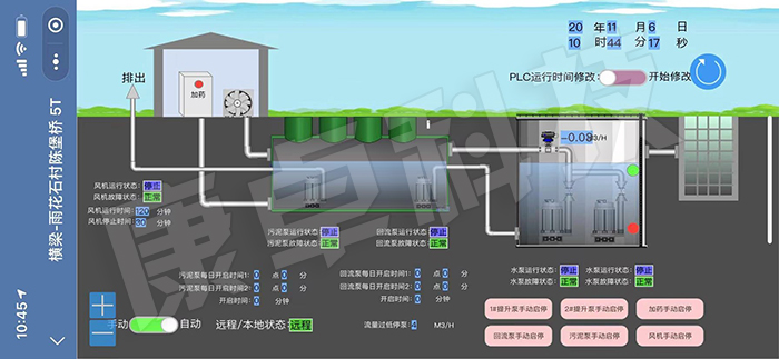 1、工藝流程的監(jiān)控:展示污水處理工藝流程,展示各節(jié)點運行設(shè)備的運行狀態(tài),控制狀態(tài),數(shù)據(jù)狀態(tài)。掌握污水生產(chǎn)過程的整體運行情況,如本日,本月,本年的(入水總流量,入水瞬時流量,出水總流量,出水瞬時流量,電能能耗),當(dāng)前入水,出水的水質(zhì)參數(shù)。