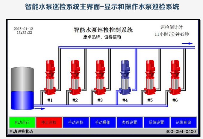 針對上述情況,為彌補(bǔ)消防泵長期閑置不用,因銹蝕等原因造成不能啟動的難題,康卓科技設(shè)計出消防水泵自動巡檢控制柜,具有對水泵機(jī)組進(jìn)行周期性的自動巡檢,以保持水泵的機(jī)械性能和電氣性能始終處于良好狀態(tài)。消防自動巡檢手段就可以從根本上解決水泵銹死問題,使消防設(shè)備“養(yǎng)兵千日,用兵一時”成為真正的現(xiàn)實。