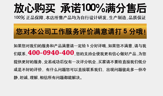 產(chǎn)品自售出起一個(gè)月包退三個(gè)月包換一年內(nèi)免費(fèi)保修,終身維修服務(wù)在使用過(guò)程中如需技術(shù)幫助,公司設(shè)立了營(yíng)銷服務(wù)的專業(yè)客服,免費(fèi)為用戶提供售前、售中、售后的技術(shù)咨詢和安裝調(diào)試指導(dǎo),解決用戶提出的問(wèn)題。