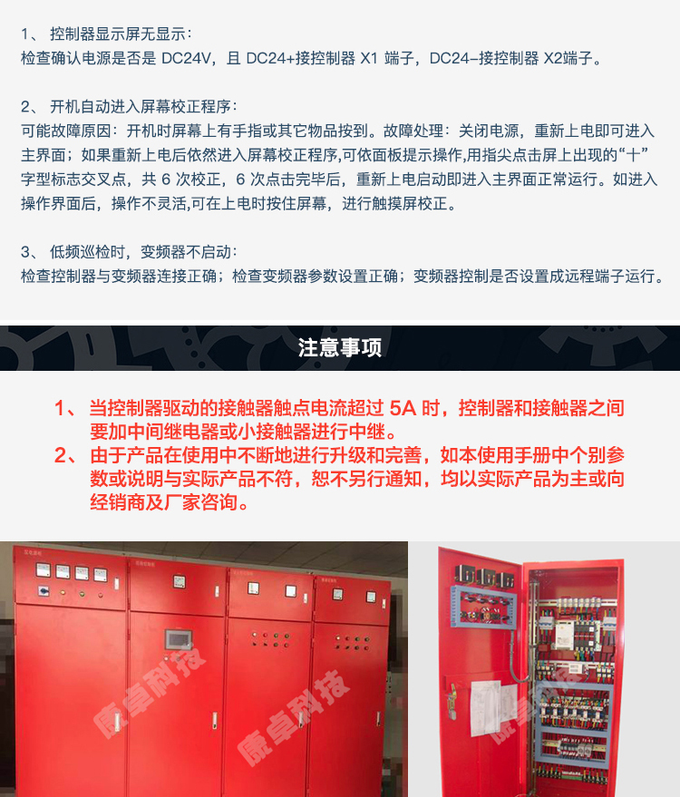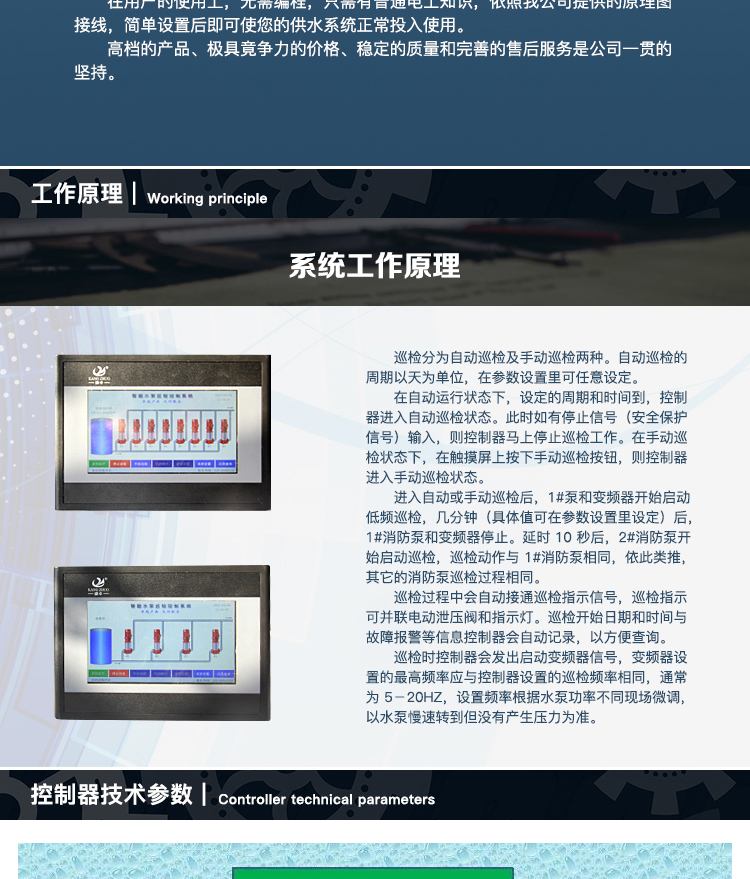 在用戶使用上,無需編程,只需有普通電工知識(shí),依照我公司提供的原理圖接線,簡單設(shè)置后即可使您的供水系統(tǒng)正常投入使用。