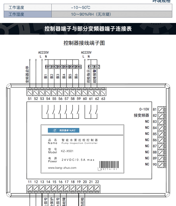 KZ-X501:主泵數(shù)量1-6;實(shí)現(xiàn)水泵定時(shí)進(jìn)行低頻或者工頻巡檢,適用于用泵頻率低、消防系統(tǒng)等。