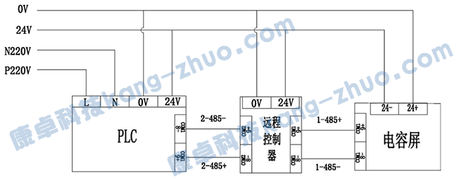 KZ-R型觸摸屏遠(yuǎn)程控制器是由南京康卓環(huán)境科技有限公司(康卓科技)設(shè)計(jì)生產(chǎn),遠(yuǎn)程控制主要用于 HMI 與 PLC 的 1:1 串口連接,支持RS232/422/485,然后將單一設(shè)備引入工廠系統(tǒng),實(shí)現(xiàn)物聯(lián)網(wǎng)及廣域網(wǎng)的控制。其原理是將 HMI 串口連接到遠(yuǎn)程控制器的COM1,PLC 串口連接到遠(yuǎn)程控制器的COM2 口,原理圖如下: