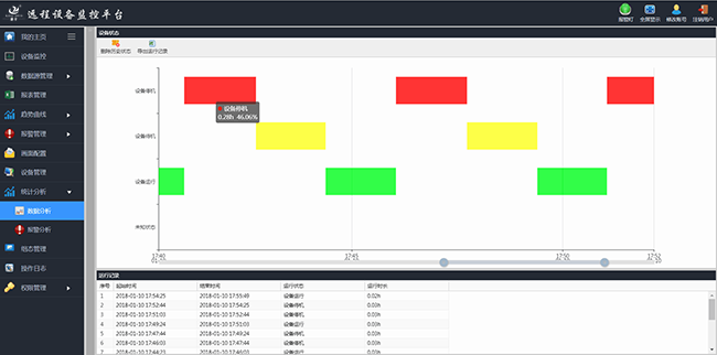 根據(jù)自定義的統(tǒng)計(jì)分析算法,對(duì)設(shè)備數(shù)據(jù)進(jìn)行分析,并以柱狀圖、餅圖等方式展現(xiàn)。