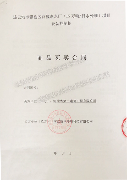連云港贛榆區(qū)莒城湖水廠(15萬噸/日水處理)設(shè)備控制柜中標(biāo)通知書