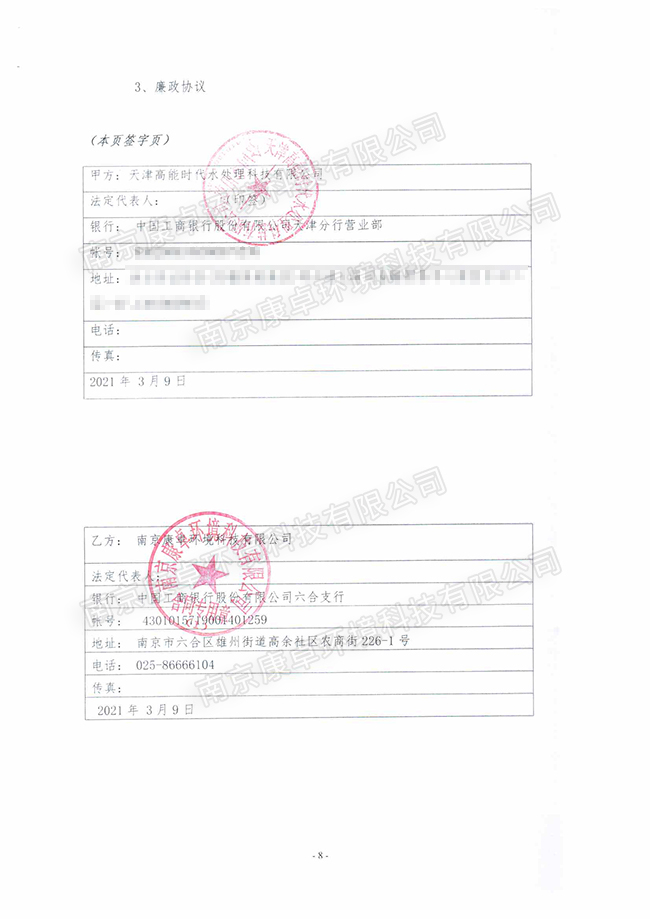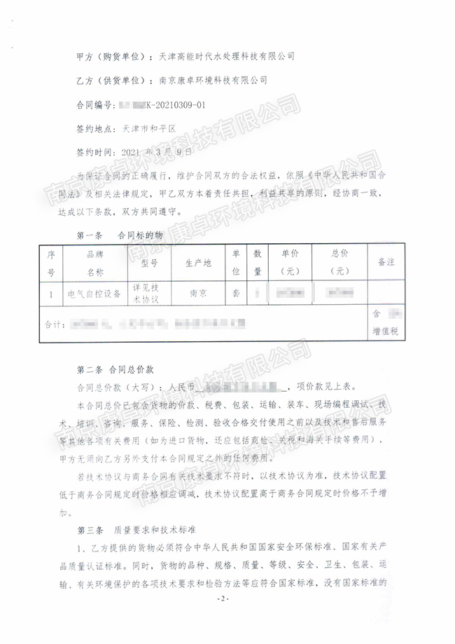 2021年3月9日,南京康卓環(huán)境科技有限公司與天津高能時代水處理科技有限公司簽署四川內(nèi)江滲濾液項目和河南平輿縣污水廠項目電氣自控設備兩個合作協(xié)議。康卓科技強經(jīng)理表示,此次與高能環(huán)境簽署合作協(xié)議,是謀求共同發(fā)展的一個良好開端。此次合作意味著未來將會有更為廣闊的空間,將會誕生更多戰(zhàn)略合作項目,在共同努力下,一定能夠通過誠信合作,實現(xiàn)互惠雙贏。