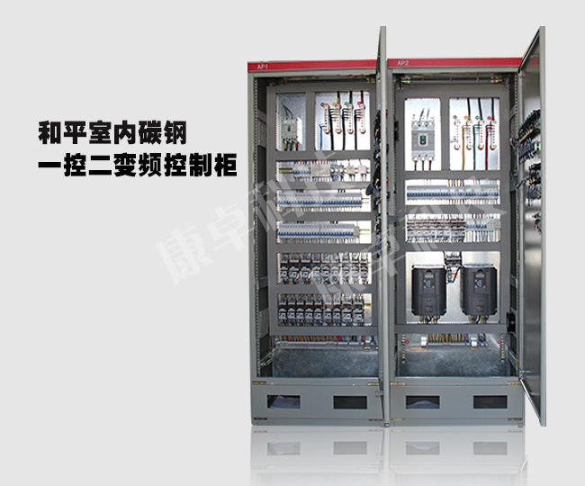 變頻控制柜生產(chǎn)廠家,華東地區(qū)變頻柜生產(chǎn)知名企業(yè)。常年提供變頻控制柜非標(biāo)定做、設(shè)計、制造、現(xiàn)場安裝調(diào)試一體化服務(wù)。康卓生產(chǎn)的變頻控制柜產(chǎn)品具有過載、短路、缺相保護(hù)以及泵體漏水,電機(jī)超溫及漏電等多種保護(hù)功能及齊全的 狀態(tài)顯示,并具備單泵及多泵控制工作模式,多種主備泵切換方式及各類起動方式??蓮V泛適用于工農(nóng)業(yè)生產(chǎn)及各類建筑的給水、排水、消防、噴淋管網(wǎng)增壓以及暖 通空調(diào)冷熱水循環(huán)等多種場合的自動控制。