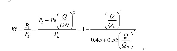 式中:Pe-額定流量時(shí)電機(jī)輸入功率KW