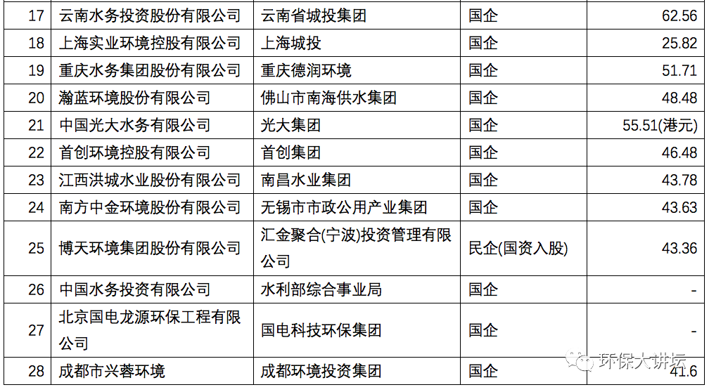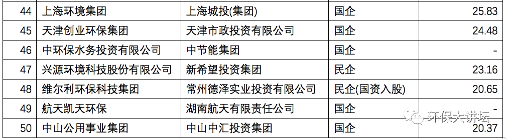 2019中國(guó)環(huán)境企業(yè)50強(qiáng)榜單