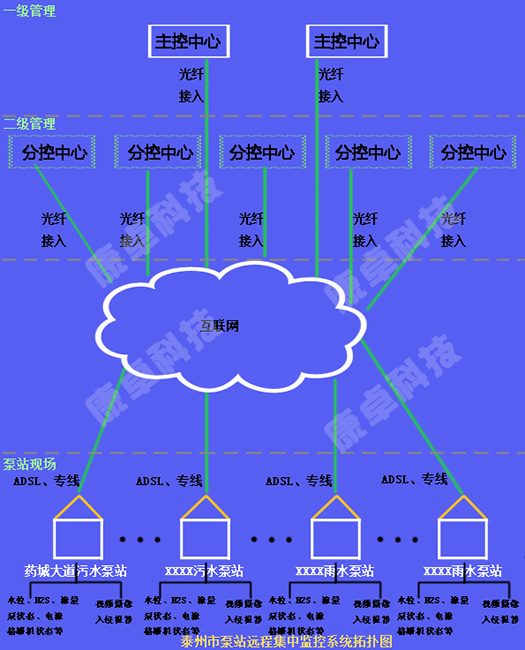 鑒于用戶使用互聯(lián)網(wǎng)第三方網(wǎng)絡(luò)資源,組建泵站集中監(jiān)控系統(tǒng)。