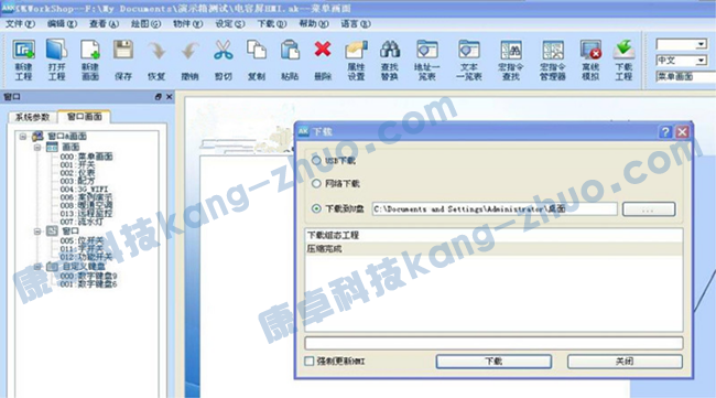 2、然后打開“KZWorkshop”軟件打開要下載的工程,下載—選擇 U 盤下載—轉(zhuǎn)存為“KZhmi.akz”文件,點擊“下載”即可存儲到相應(yīng)的位置,如下圖: